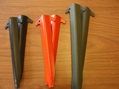 We manufacture 9" & 12" aluminum tent stakes in Black, Orange, and OD Green. Additional colors upon request